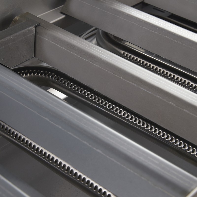 - 3 quemadores de acero inoxidable en forma de “U” que maximizan el flujo de calor