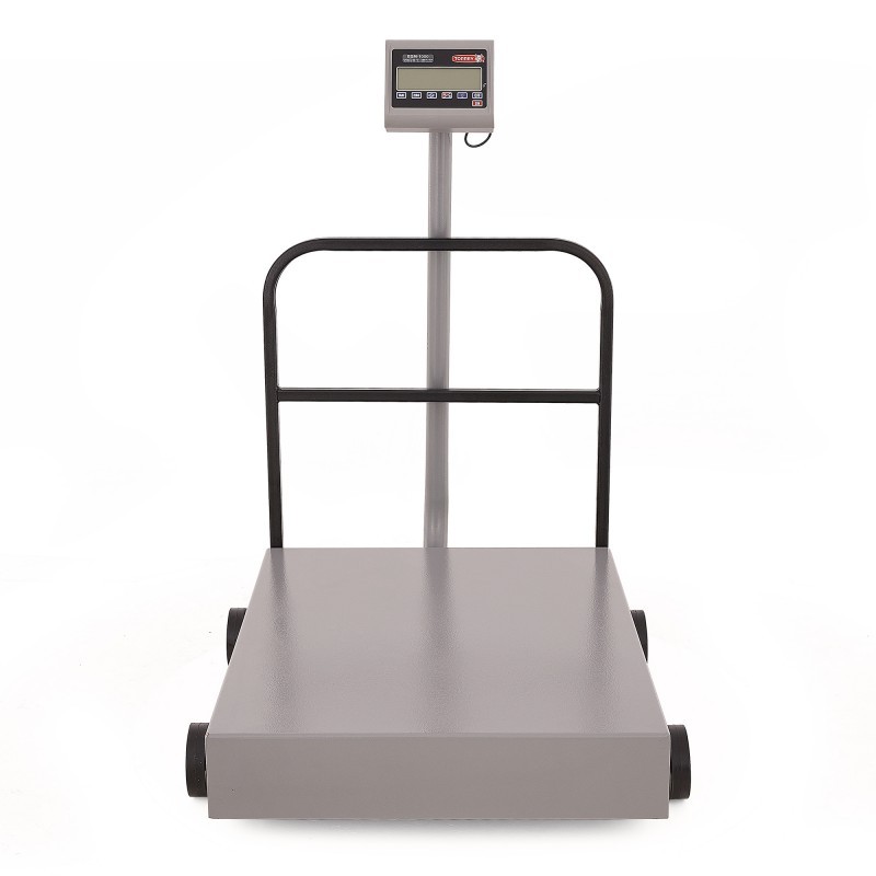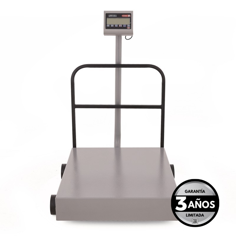La báscula más robusta de su categoría: amplia y resistente plataforma para grandes volúmenes y uso rudo, cuenta con 4 llantas para un fácil desplazamiento.