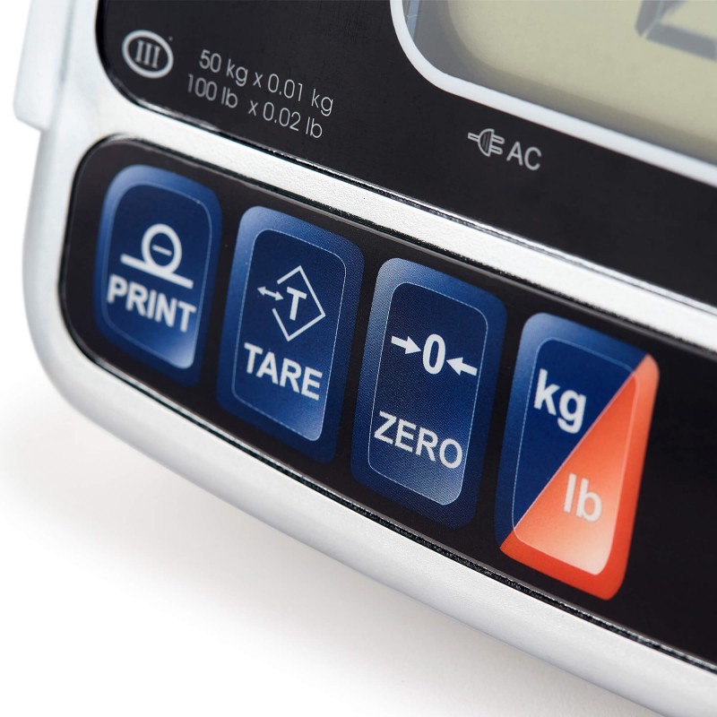 Báscula de tamaño práctico y compacto con diseño robusto, ideal para recibo de paquetería, mensajería y mercancía en bodegas. Cuenta con cable tipo telefónico retráctil para fácil colocación del módulo.