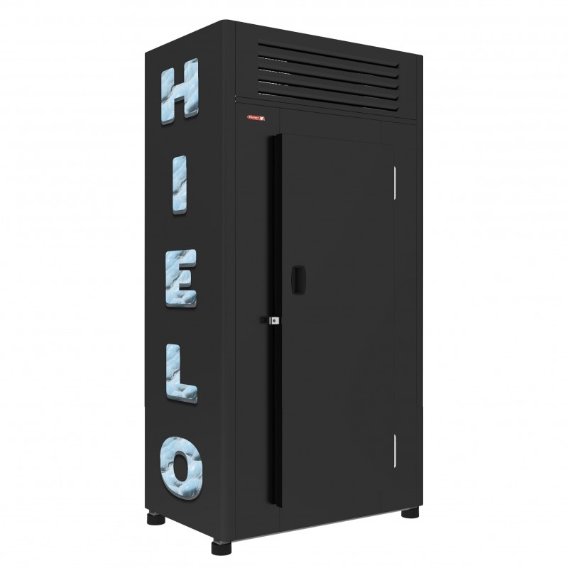 Conservador de hielo diseñado para alojar hasta 60 bolsas de 5kg, sistema de enfriamiento que mantiene el hielo sólido.