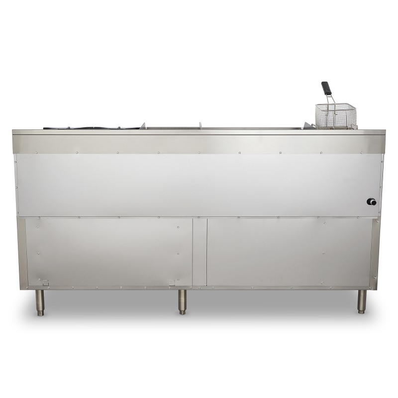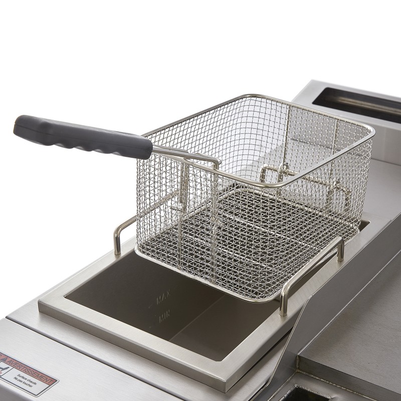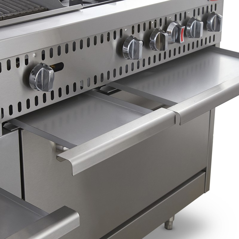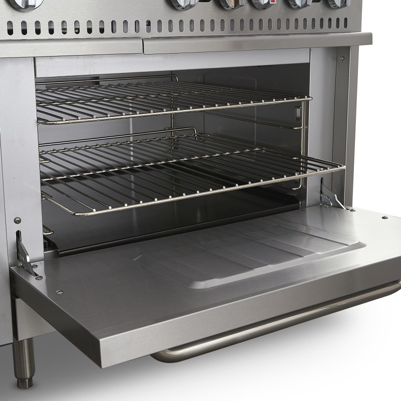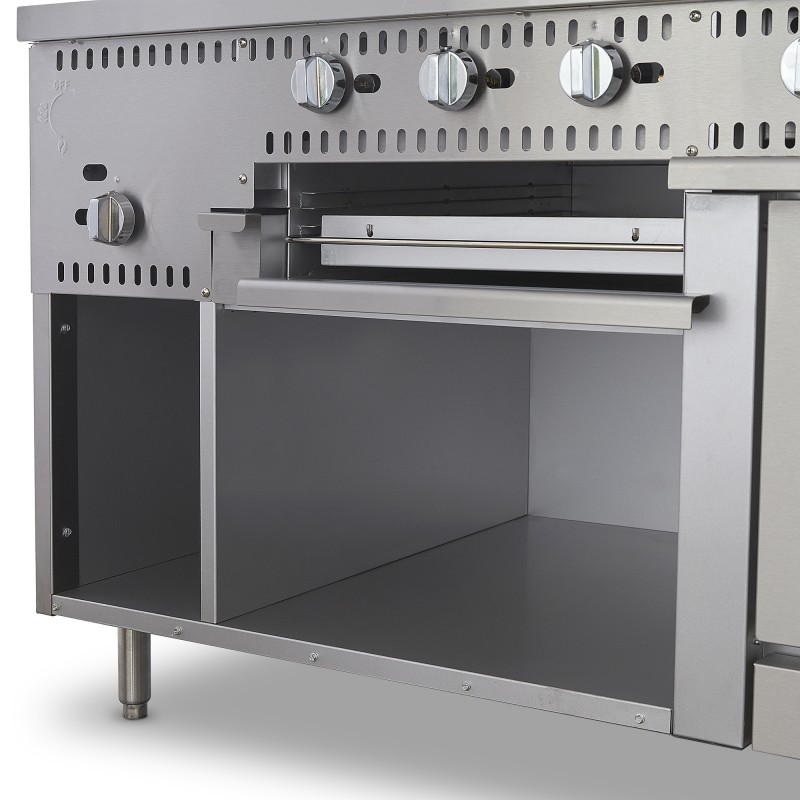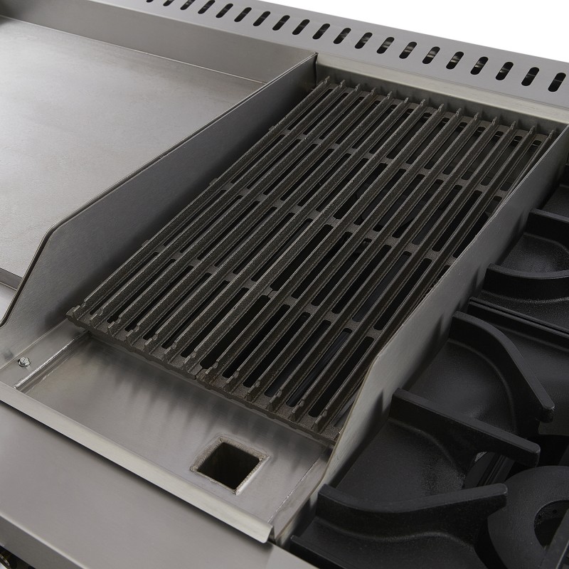 Estufa profesional de gas con parrillas, horno, freidora, plancha, asador y gratinador para solucionar todas tus necesidades de cocción en un sólo equipo integrado.