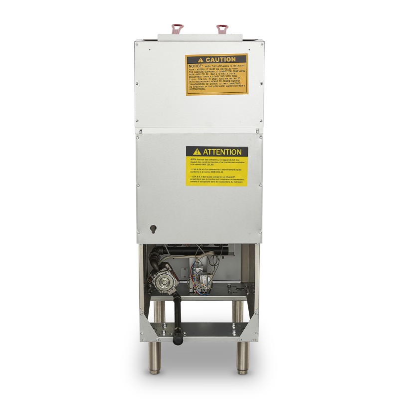 Freidora de gas con capacidad de 15 L. Cuenta con 3 quemadores fabricados en hierro vaciado que maximizan el flujo de calor sobre toda la superficie de las parrillas.