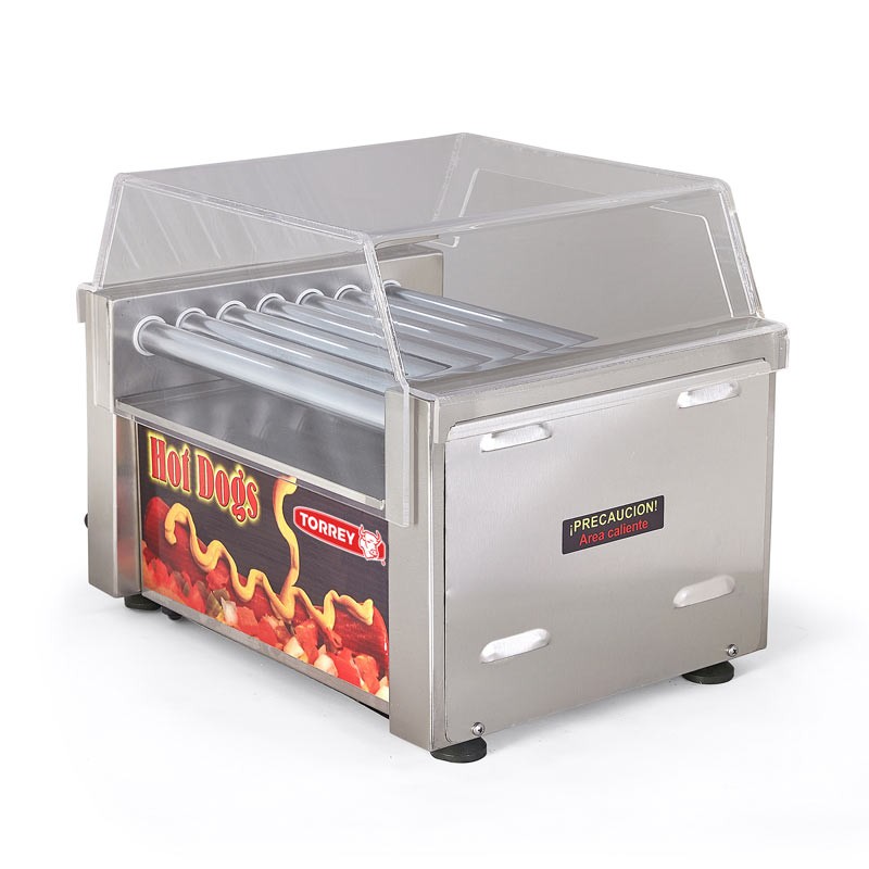 Hotdoguera con capacidad para 12 salchichas de rodillos anti adherencia y temperatura controlable para una asado perfecto.