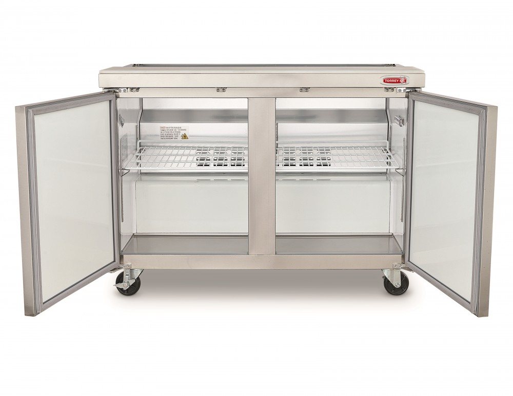Mesa fría bajo barra de 48 pulgadas, construida en acero inoxidable para mayor durabilidad e higiene. Puede ser utilizado como mesa o isla de trabajo en cocinas, o como un refrigerador bajo barra.
