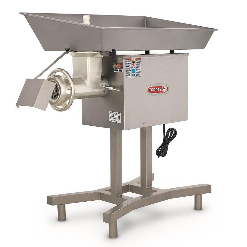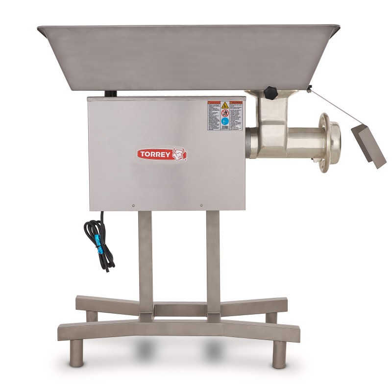 Molino para carne de 5 HP con capacidad de molienda de 29 Kg por minuto, con cedazos y navajas intercambiables para diferentes aplicaciones