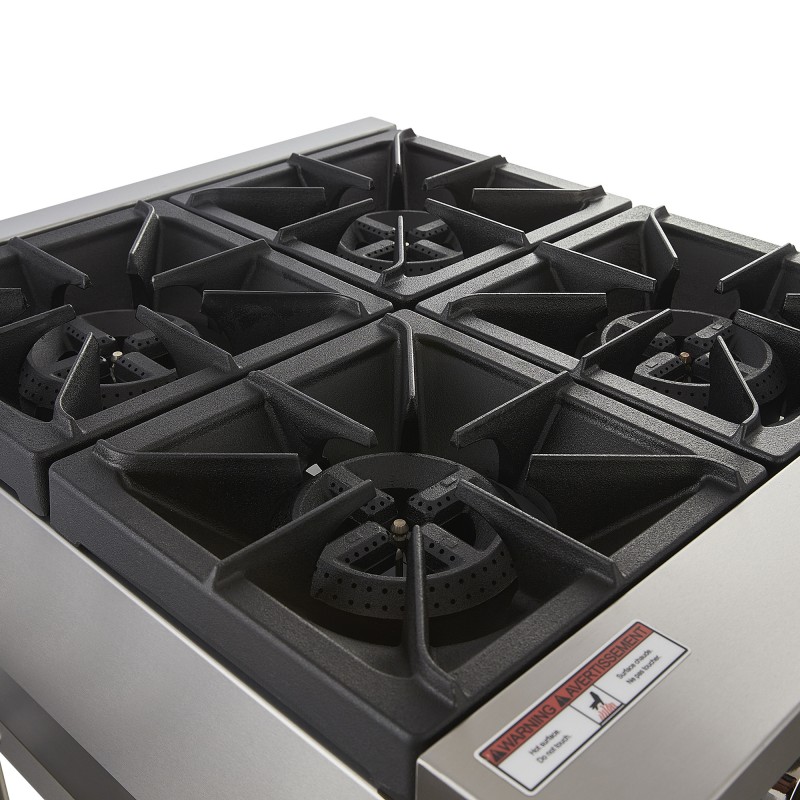 Parrilla de gas de 4 quemadores para tener gran versatilidad de cocción en un solo equipo.