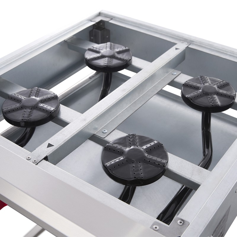 La parrilla Torrey cuenta con 4 quemadores porcelanizados, los cuales distribuyen el flujo de calor sobre toda la superficie de las perillas.