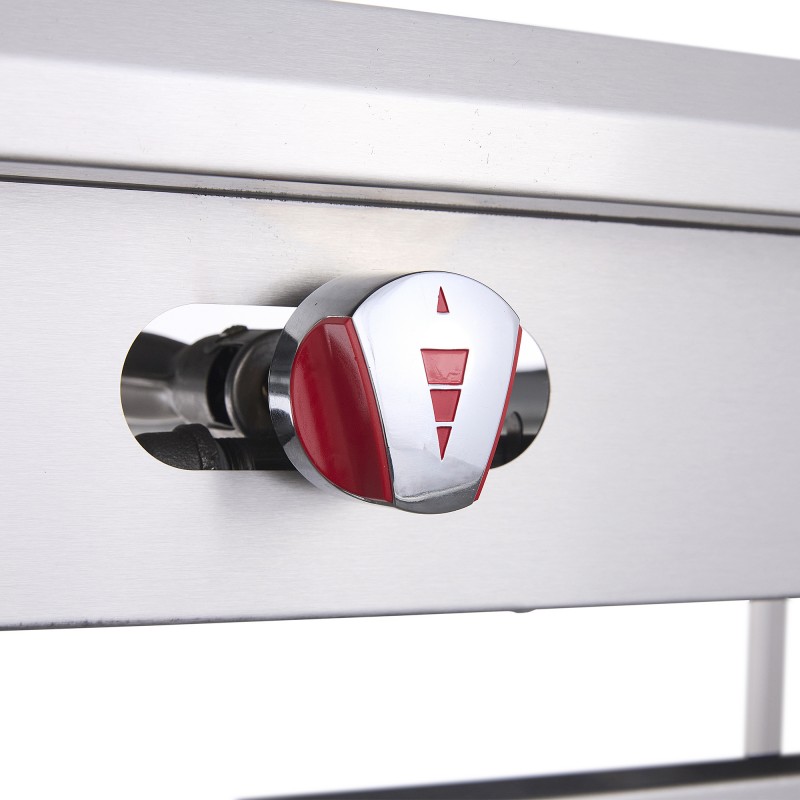 - Plancha a gas fabricada en acero al carbón calibre 10, perillas metálicas en zamak pulido brindando gran resistencia y durabilidad.