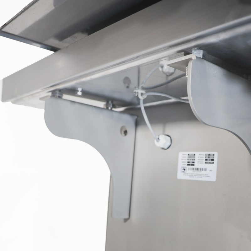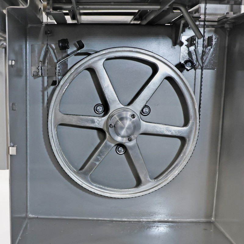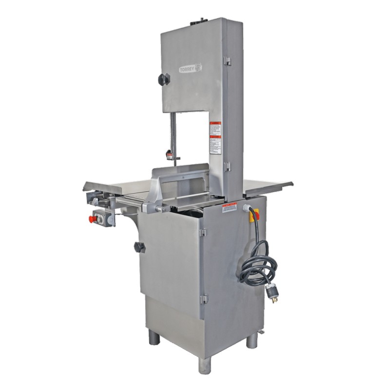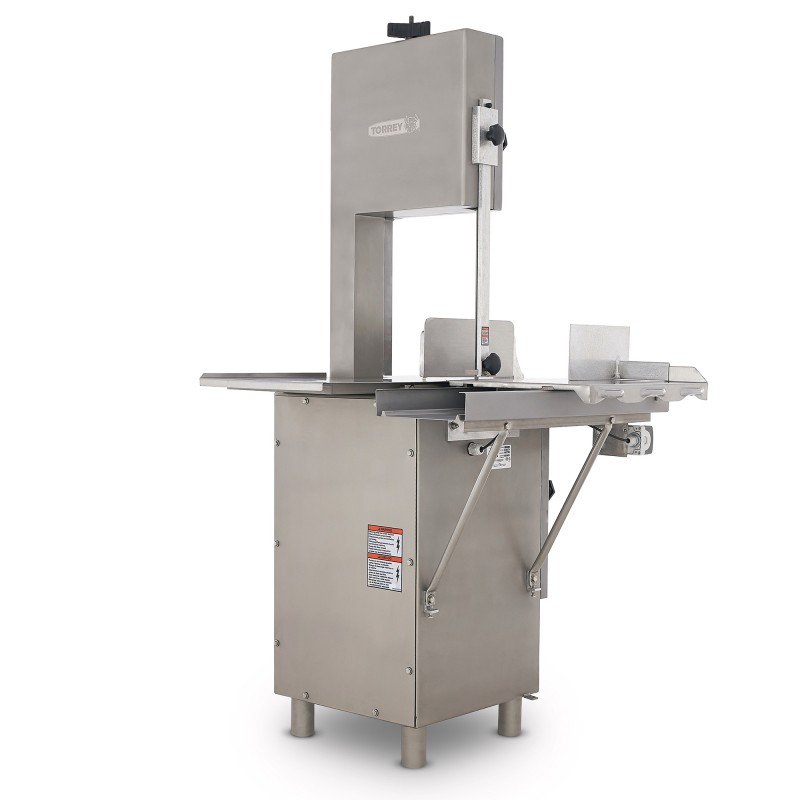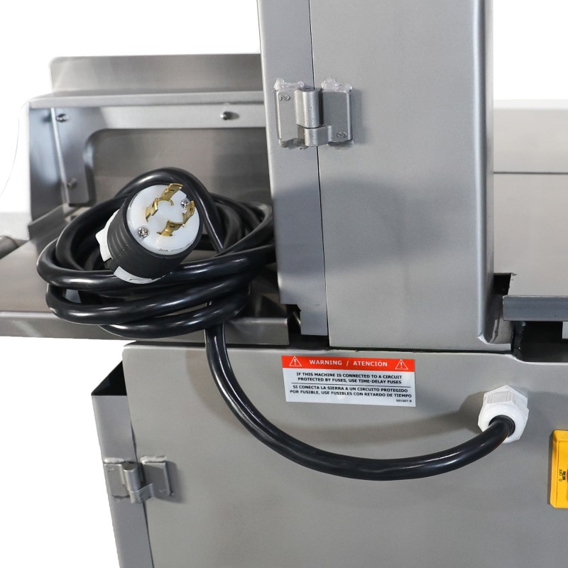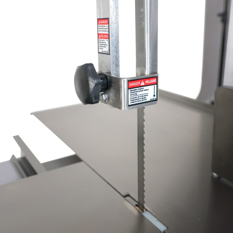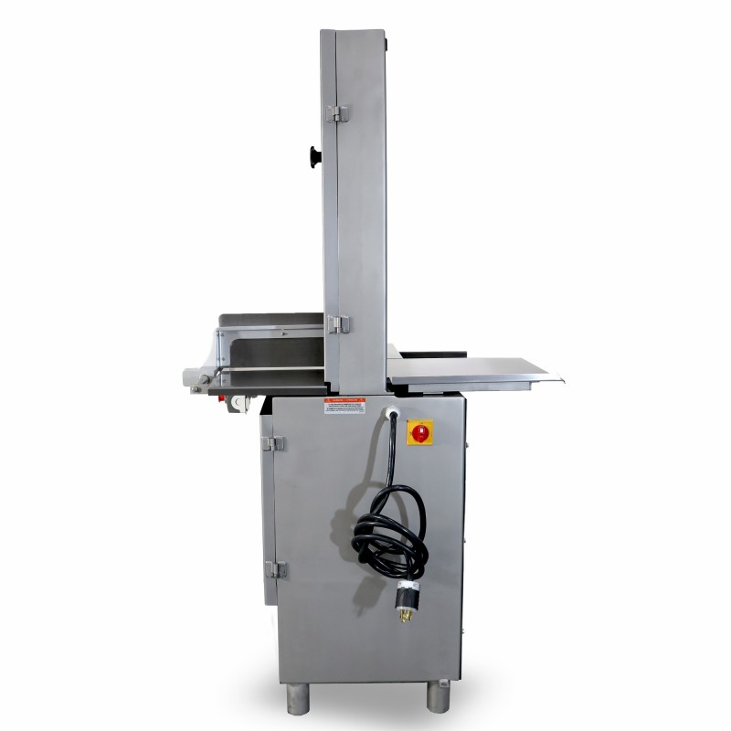 Sierra carnicera de acero inoxidable, banda de 295 cm con mesa desmontable y múltiples dispositivos de seguridad para protección