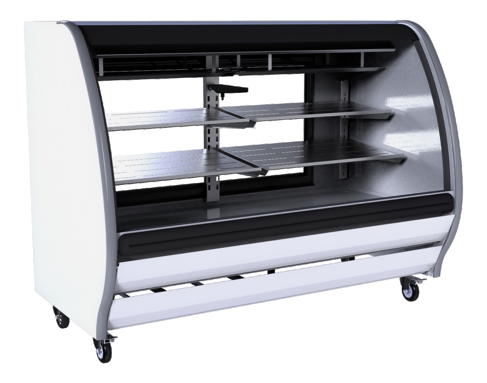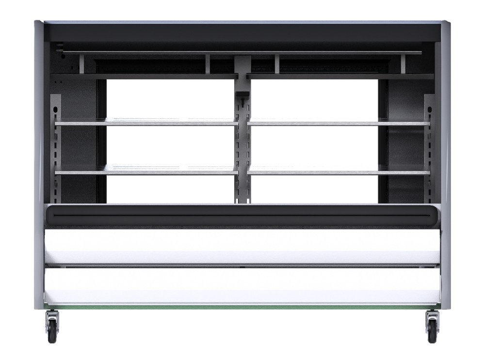 - Cuenta con 4 charolas en acero inoxidable y ofrece 3 niveles de exhibición