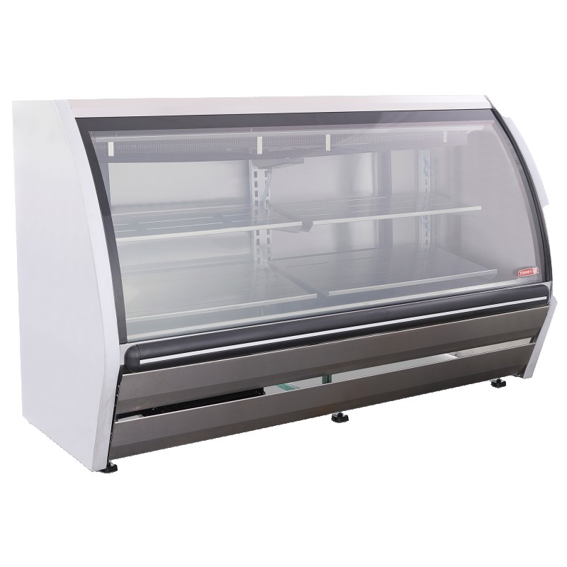 - Cuenta con 4 charolas en acero inoxidable y ofrece 3 niveles de exhibición.