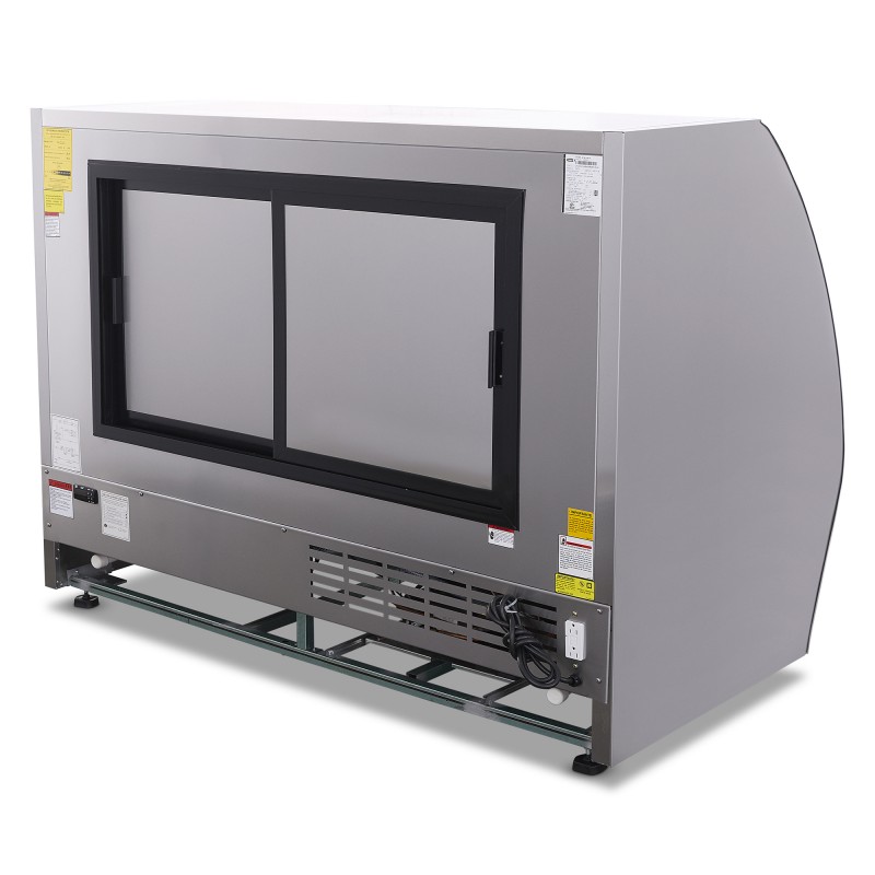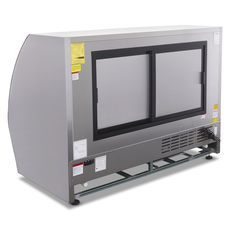 - Cuenta con 4 charolas en acero inoxidable y ofrece 3 niveles de exhibición.