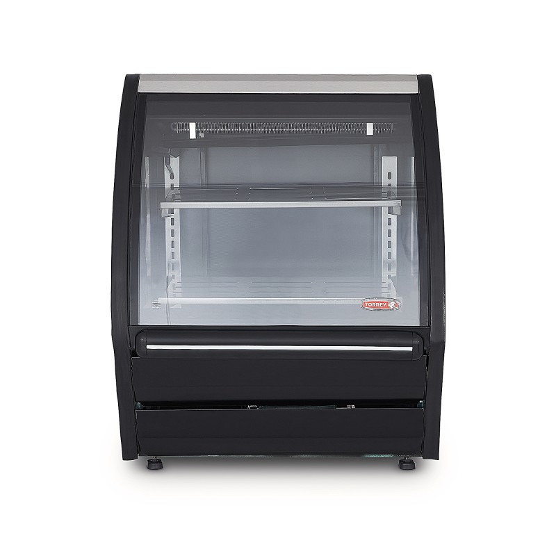 Vitrina de exhibición color negro de 92 cm con 3 niveles de exhibición, control digital de temperatura y puerta posterior sólida de fácil acceso ideal para establecimientos pequeños.